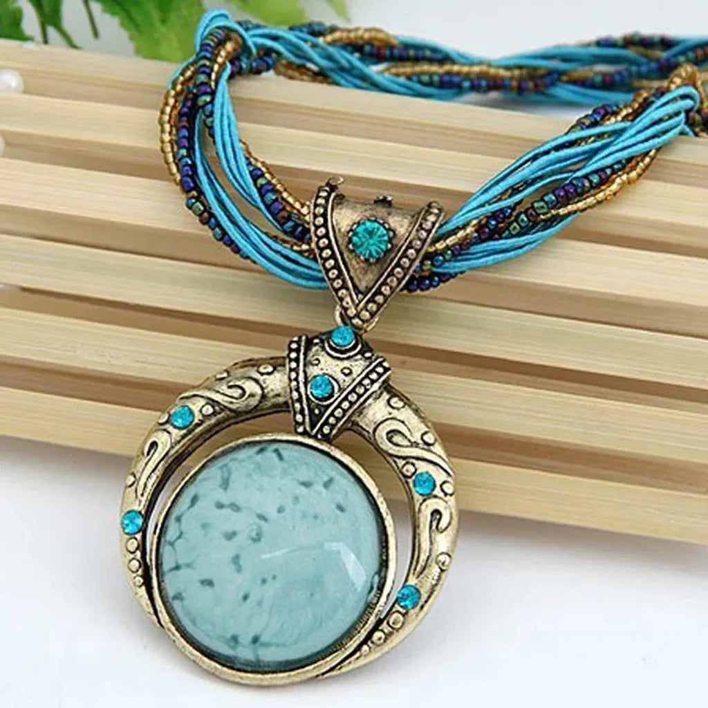 Ρετρό κολιέ με εθνολογικό κρεμαστό σε πράσινο κρύσταλλο
