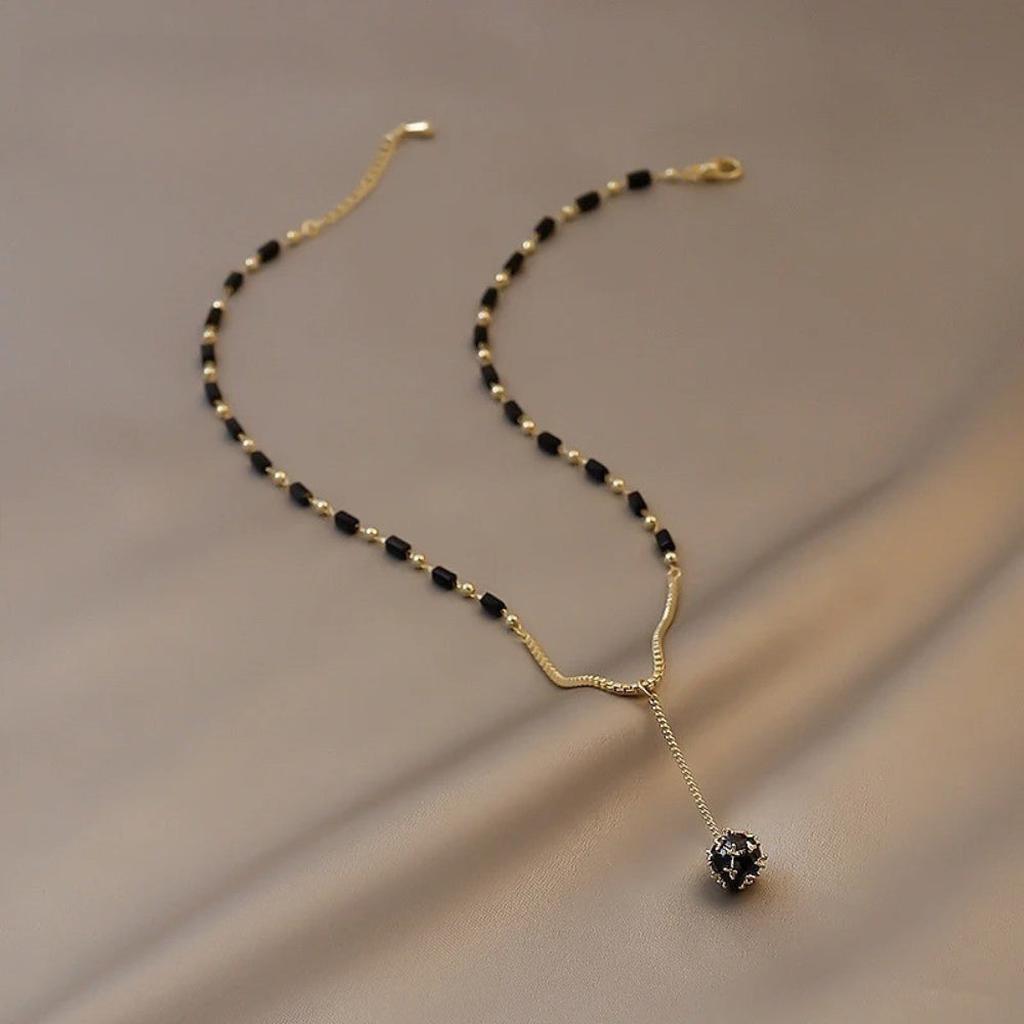 Κολιέ Vintage με Μαύρες Χάντρες και Κρεμαστό Σχήμα Σταγόνας