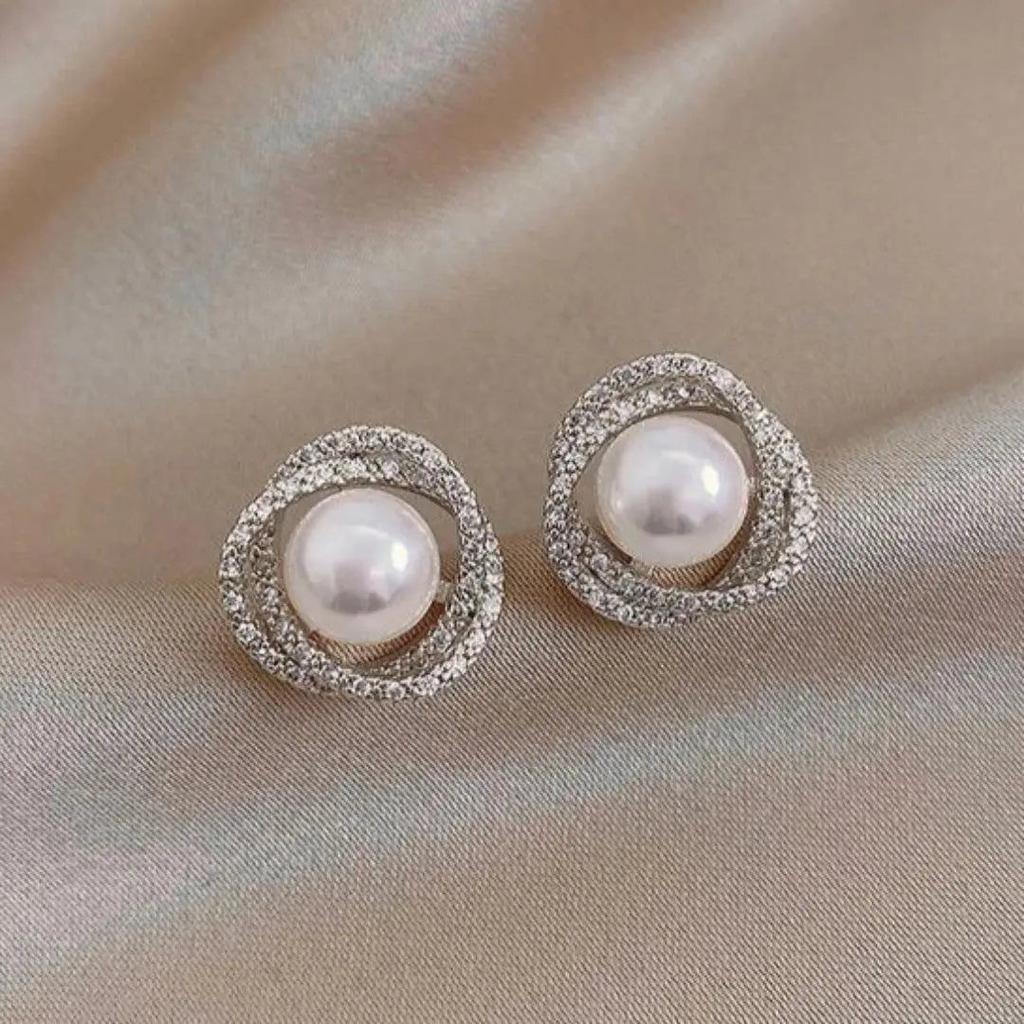 Λαμπεροί Σπιράλ Σκουλαρίκια με Κομψές Πέρλες